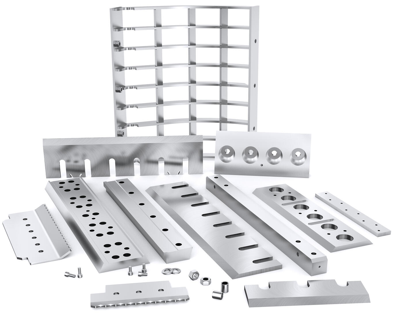 Wir stellen hochwertige Ersatzteile für Bruks-Hackmaschinen her, darunter Messer, Gegenmesser, Halterungen, Brecher, Verschleißplatten, Schaufeln, Siebe, Einzugswalzen und weitere Verschleißteile einschließlich Befestigungsmaterial.