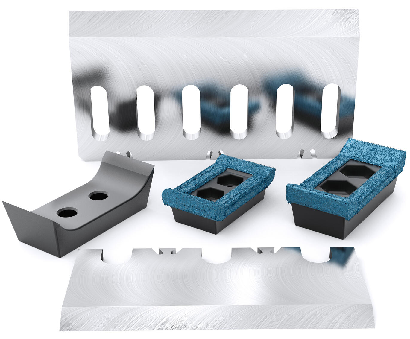 Die Messer für Peterson-Maschinen werden aus hochwertigstem Werkzeugstahl gefertigt und sind sowohl für kleinere Häcksler als auch für große Maschinen zur Verarbeitung von sauberem und recycelbarem Holz bestimmt. Sie werden mit hoher Präzision und Leistungsfähigkeit hergestellt. Zum Produktportfolio gehören auch Hämmer für PETERSON-Zerkleinerer. Die Hämmer werden entweder mit Hartauftragsschweißung oder mit aufgelöteten TCT-Plättchen hergestellt und sind ideal für das Recycling von Holzmaterial geeignet.